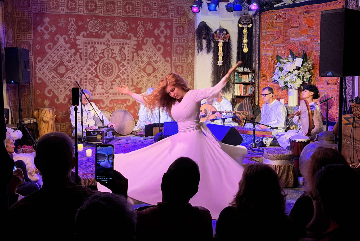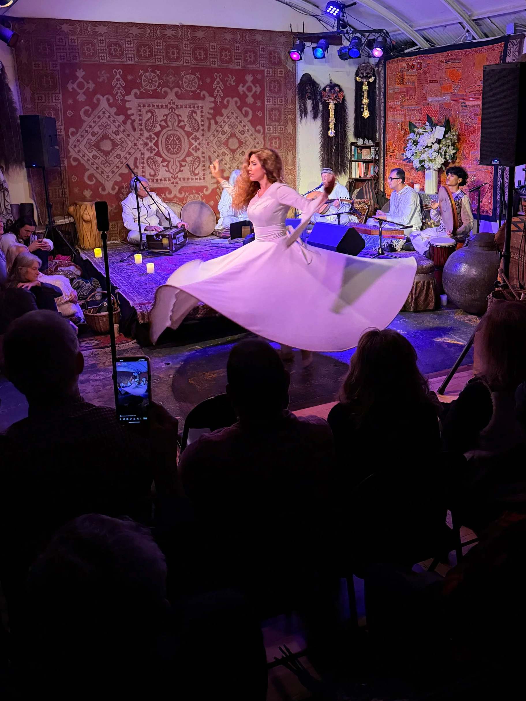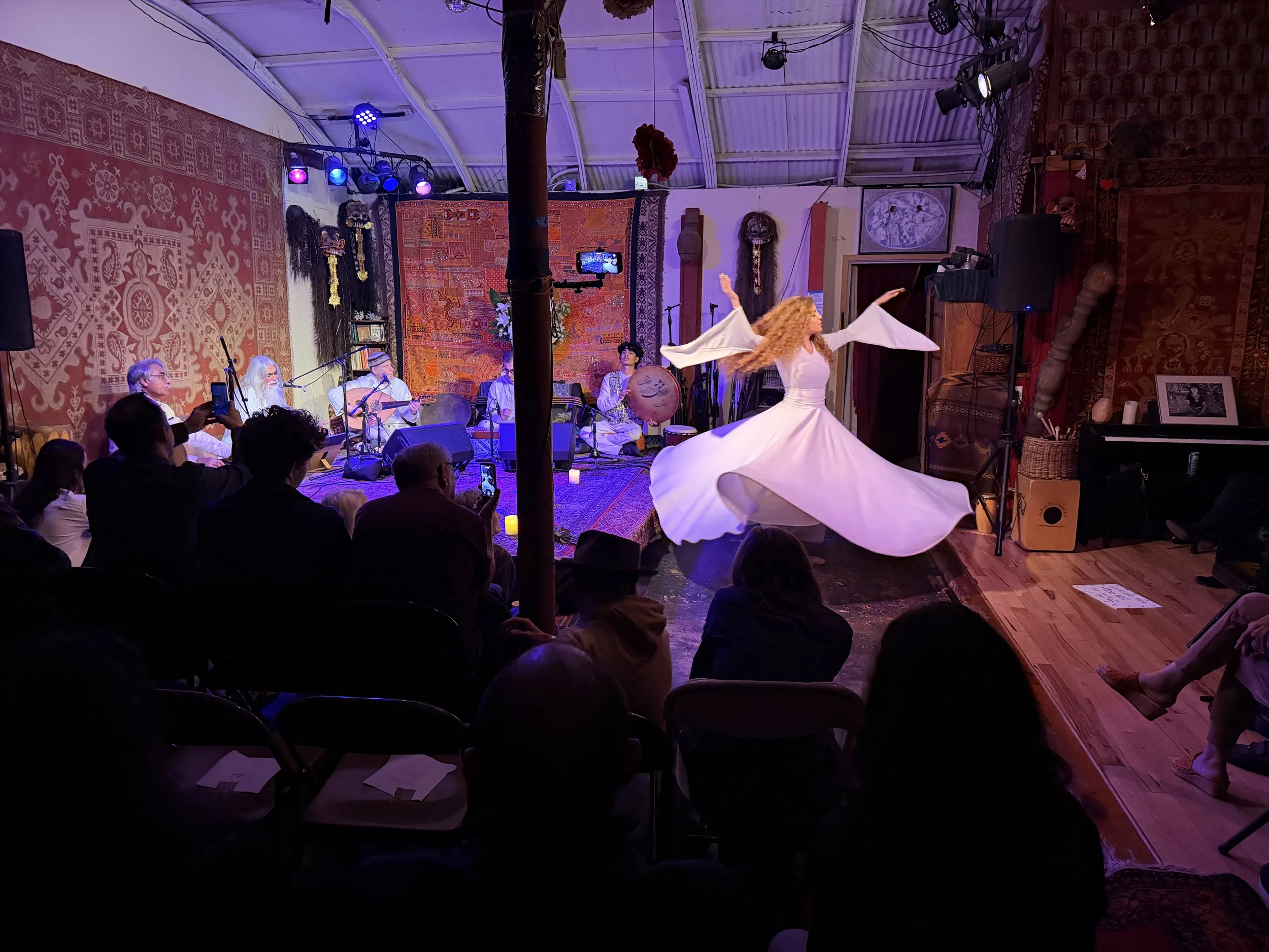 Rumi Night is a monthly sacred gathering where poetry, whirling, breath, and music come together.
